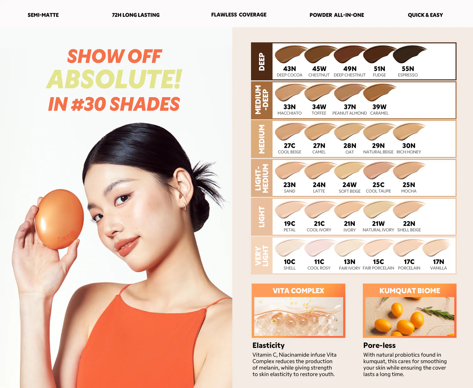 با استفاده از کوسن فیلتر AI TIRTIR Mask Fit، عیوب را محو کنید، بافتی صاف داشته باشید و ظاهری بینقص و بینقص را نمایان کنید.
